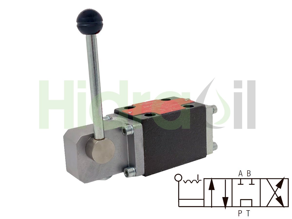 • CETOP 03 / NG6. Größe 4-Wege; 3-Positionen-Modular-Wegeventil mit manueller Hebelbedienung.