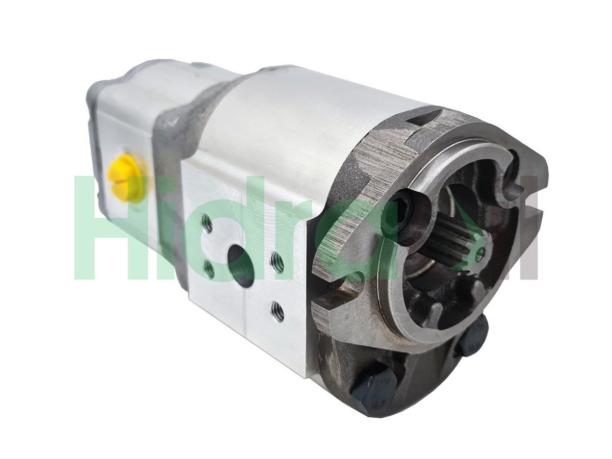 550/1/37254 Dynamatic pompe hydraulique double à engrenage 22.4+12.8 cm3 arbre cannelé