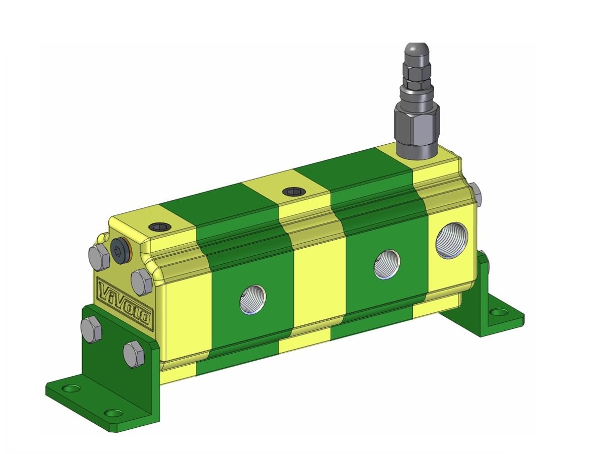 • Vivoil (Vivolo) Divisore di flusso ad ingranaggi Gruppo 1 con corpo in alluminio con valvola di rifasamento monofase comune a tutti i moduli divisore di flusso.