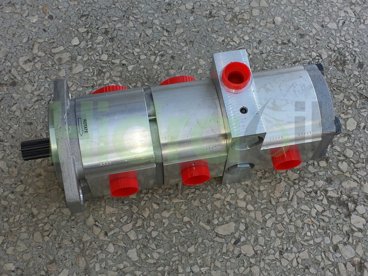 100145 Hidraoil hydraulic triple gear pump with splined shaft and block valves